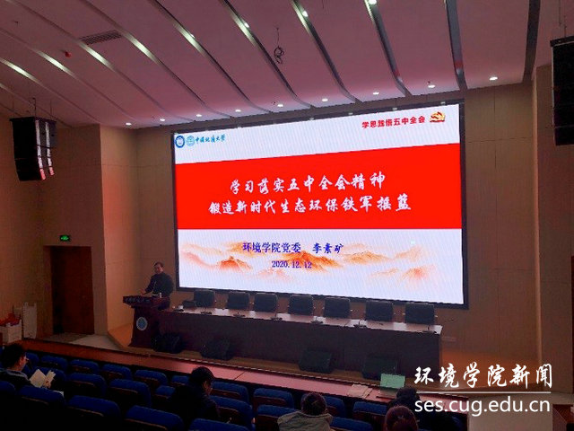 党委书记李素矿以“学习落实五中全会精神,锻造新时代生态环保铁军”为主题进行授课。