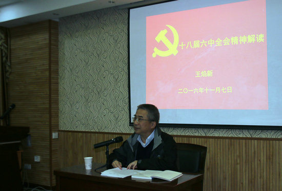 2016年11月7日晚,在文华楼205报告厅,王焰新校长讲授党课,解读党的十八届六中全会精神。环境科学与工程系党支部全体党员、bet365体育投注下载