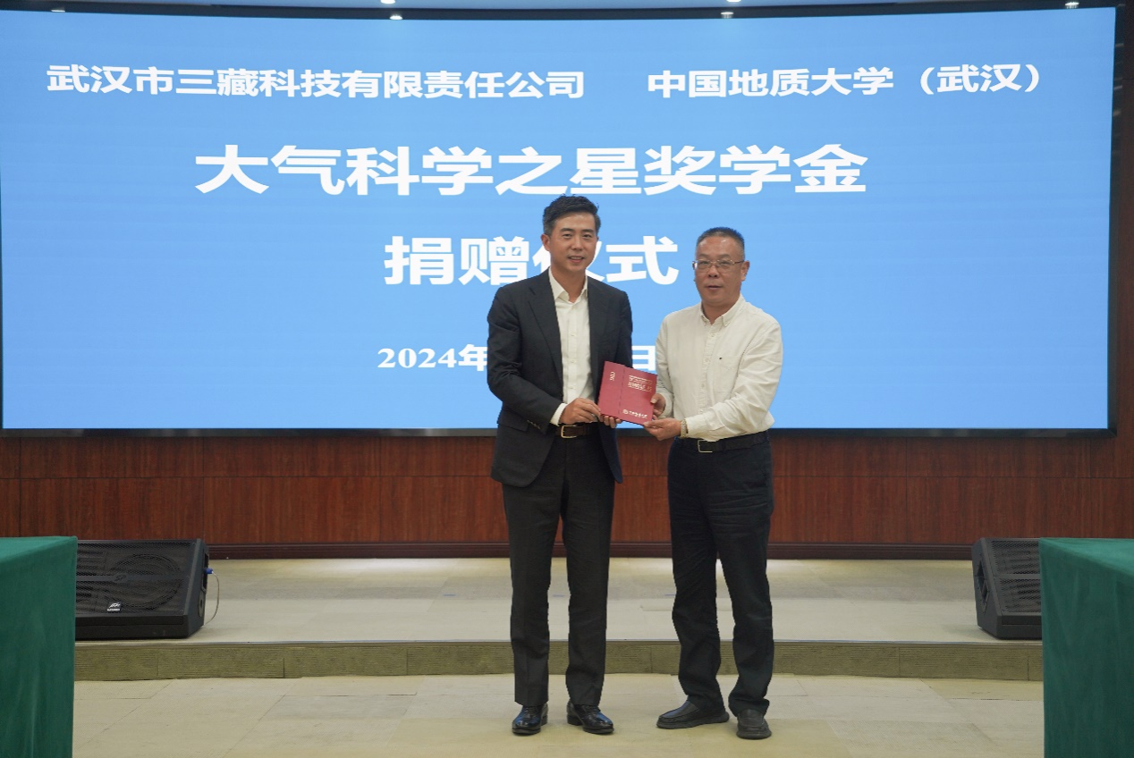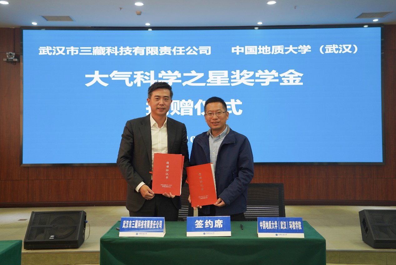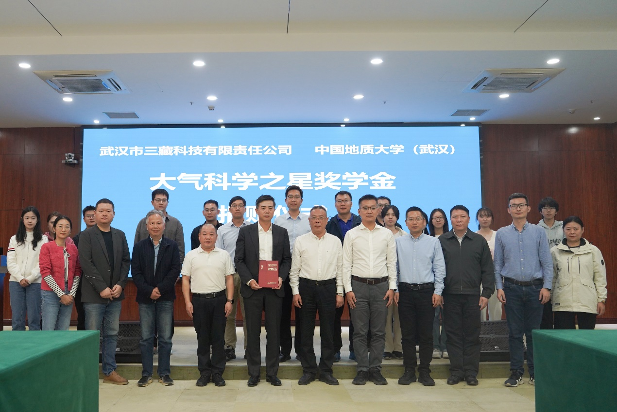 捐赠大气科学之星奖学金。三藏科技董事长童甫,首席运营官宋光宇和行政人力总监张艳,我校党委副书记、纪委书记唐忠阳,校友与社会合作处副处长袁江,bet365体育投注下载