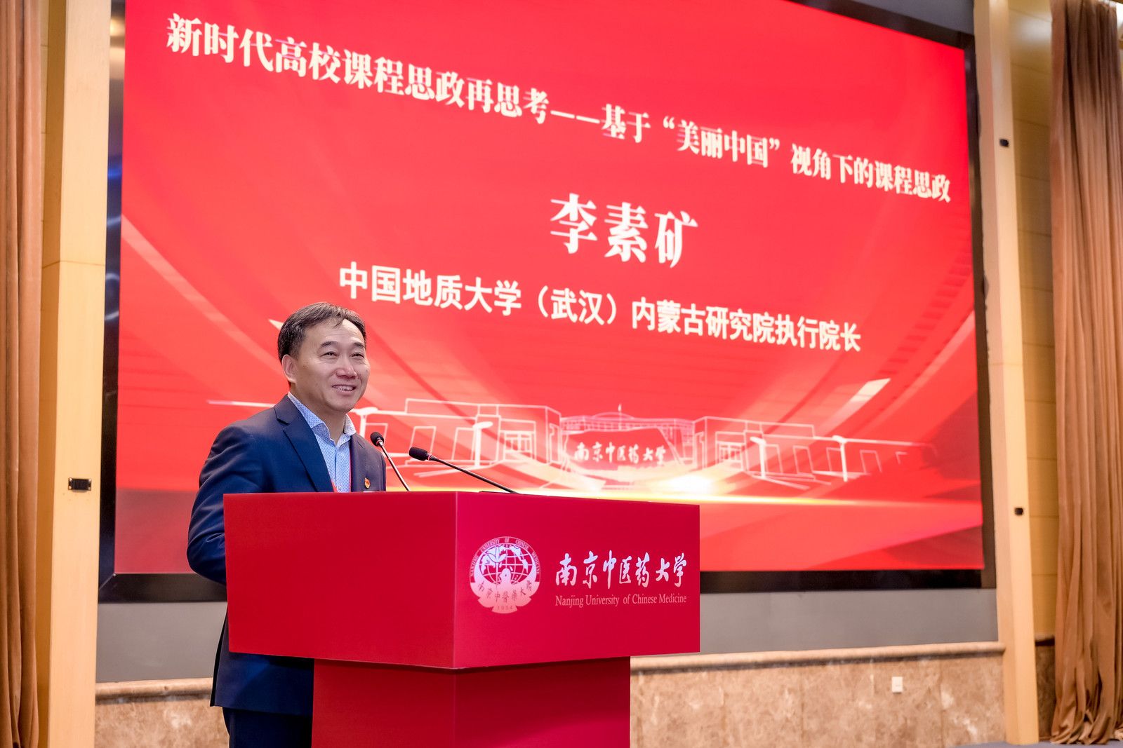 党建论坛暨研讨会环节,中国地质大学(武汉)内蒙古研究院执行院长李素矿作“新时代高校课程思政再思考——基于‘美丽中国’视角下的课程思政”的主题报告,他介绍了打造美丽中国课程思政、课程思政要义以及高质量课程思政再思考的经验、举措和成果。
