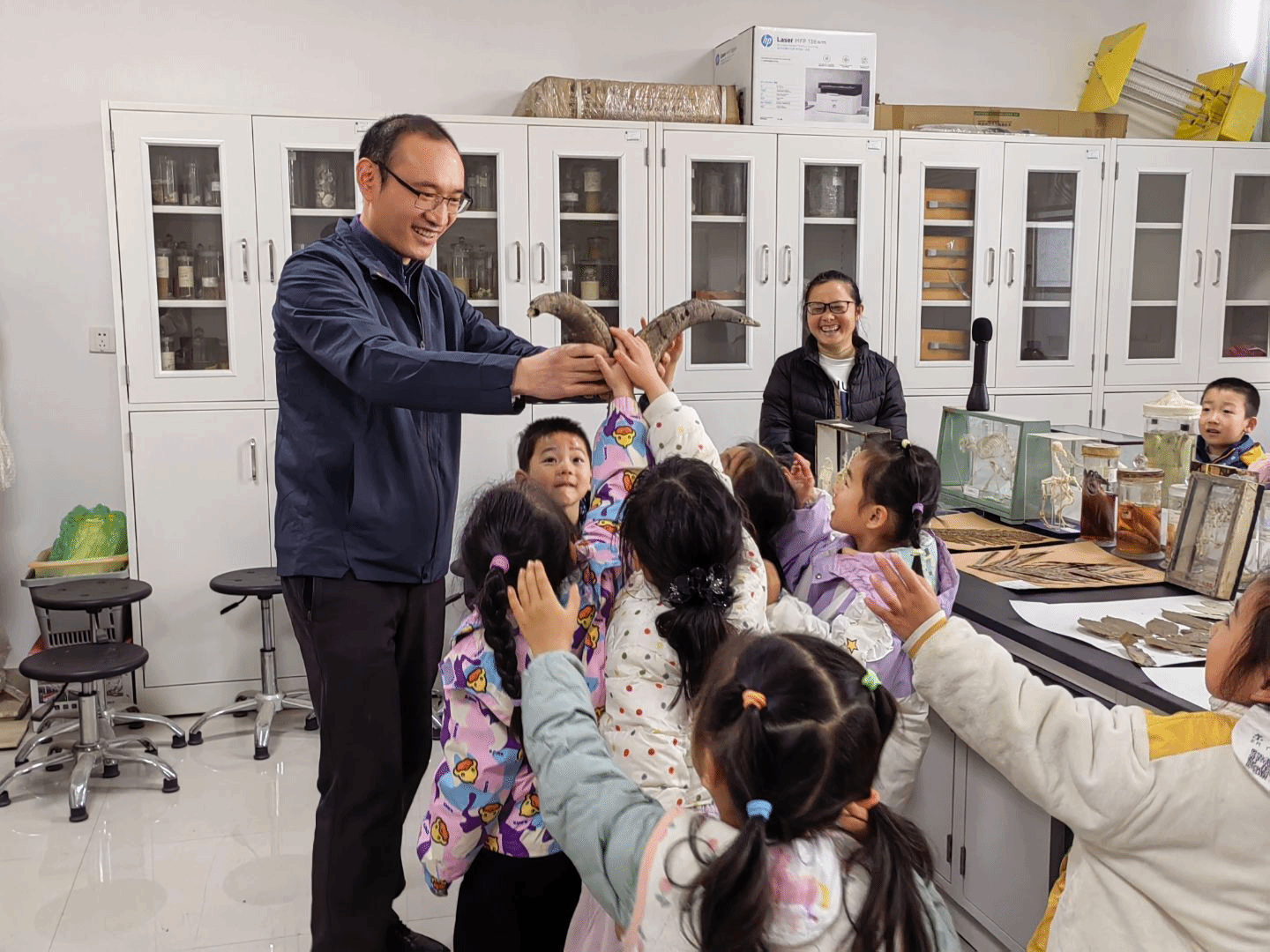 生物科普标本室,开启了一场奇妙的生物探秘之旅。标本室老师、研究生和绿色协会的同学带小朋友们浏览了形态各异的昆虫标本、栩栩如生的动物标本以及色彩斑斓的植物标本,用生动形象的语言,为他们讲解了各种生物的形态特征、生活习性以及在地球环境中的作用。小客人们听得津津有味,并提出各种有趣的问题。此次科普活动不仅丰富了小朋友们的课外知识,激发了他们对自然科学的兴趣,也让他们感受到了生物多样性的魅力,增强了保护生态环境的意识。相信这次奇妙的生物探秘之旅,将在小朋友们的心中播下热爱自然、探索科学的种子。
