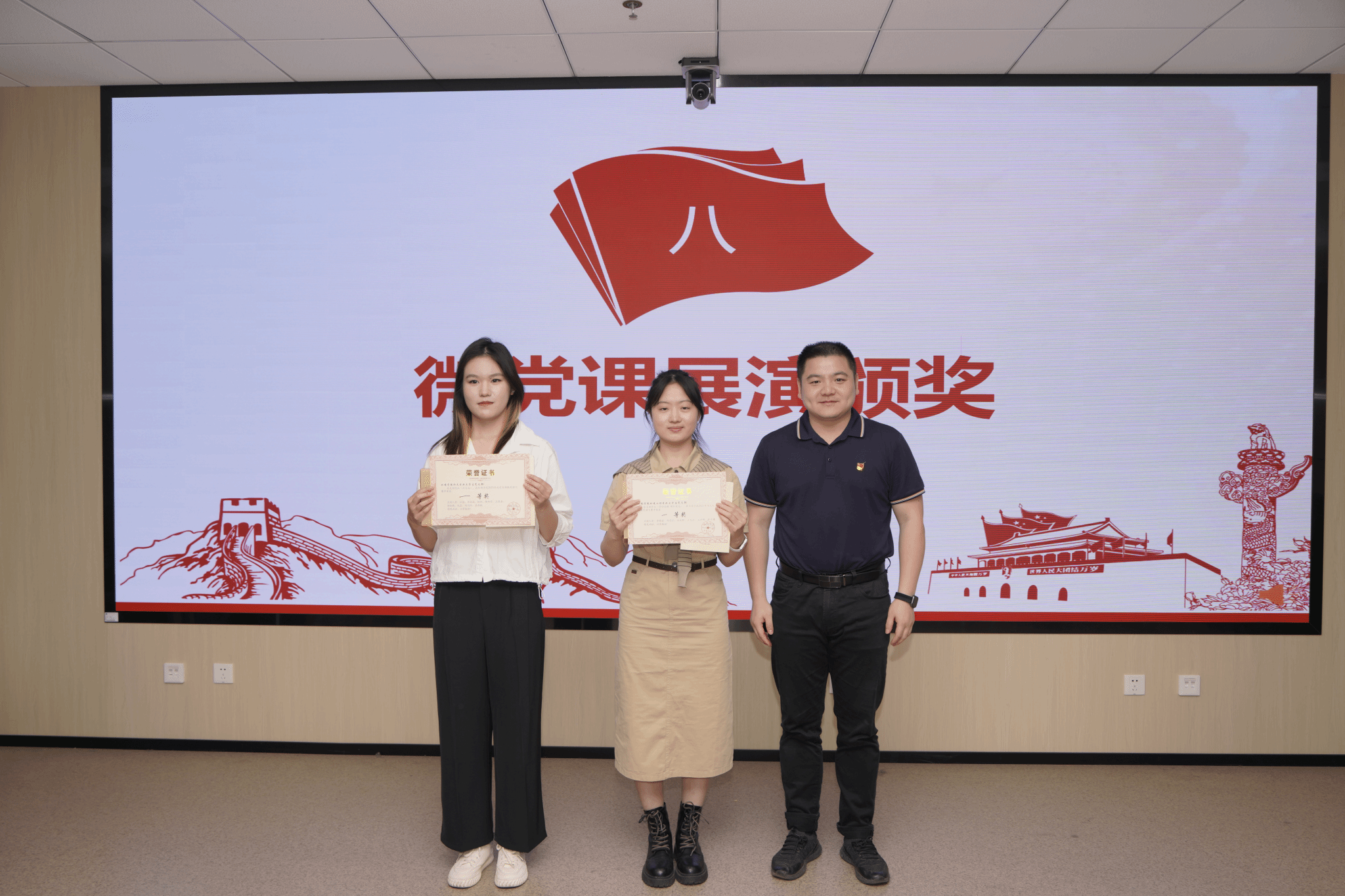 孟庆达为本次展演活动二等奖获奖支部颁奖。生物科学与技术研究生党支部、水土污染与防治研究生党支部、地质环境保护与生态修复研究生党支部3个支部获得二等奖。