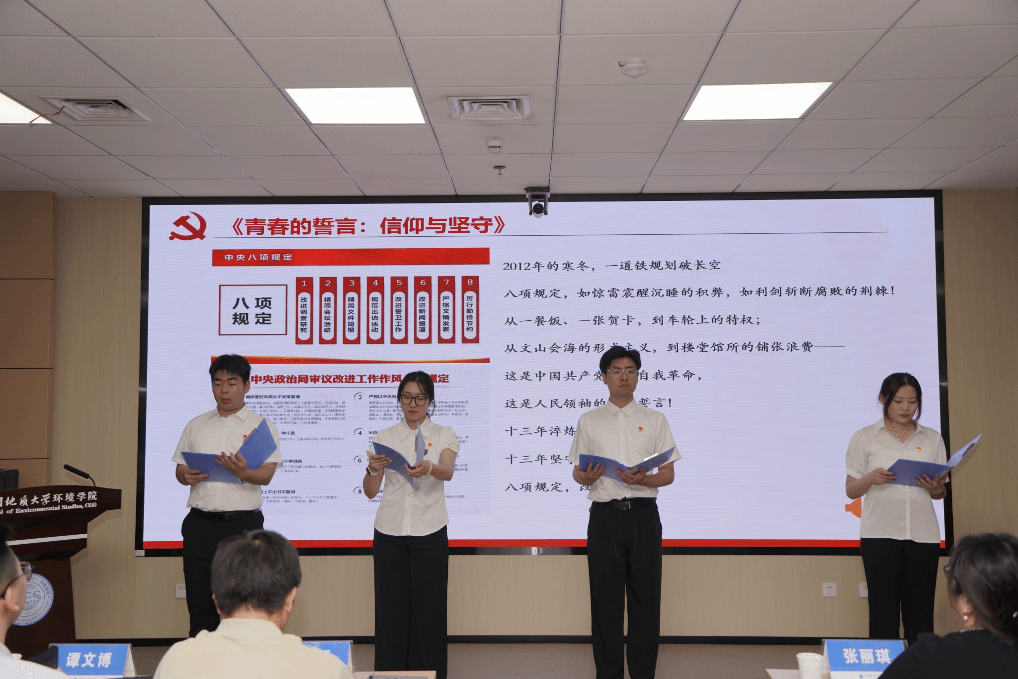 学生党支部、水文专业大学生党支部、环境工程专业大学生党支部、地质环境保护与生态修复研究生党支部依次进行展演。