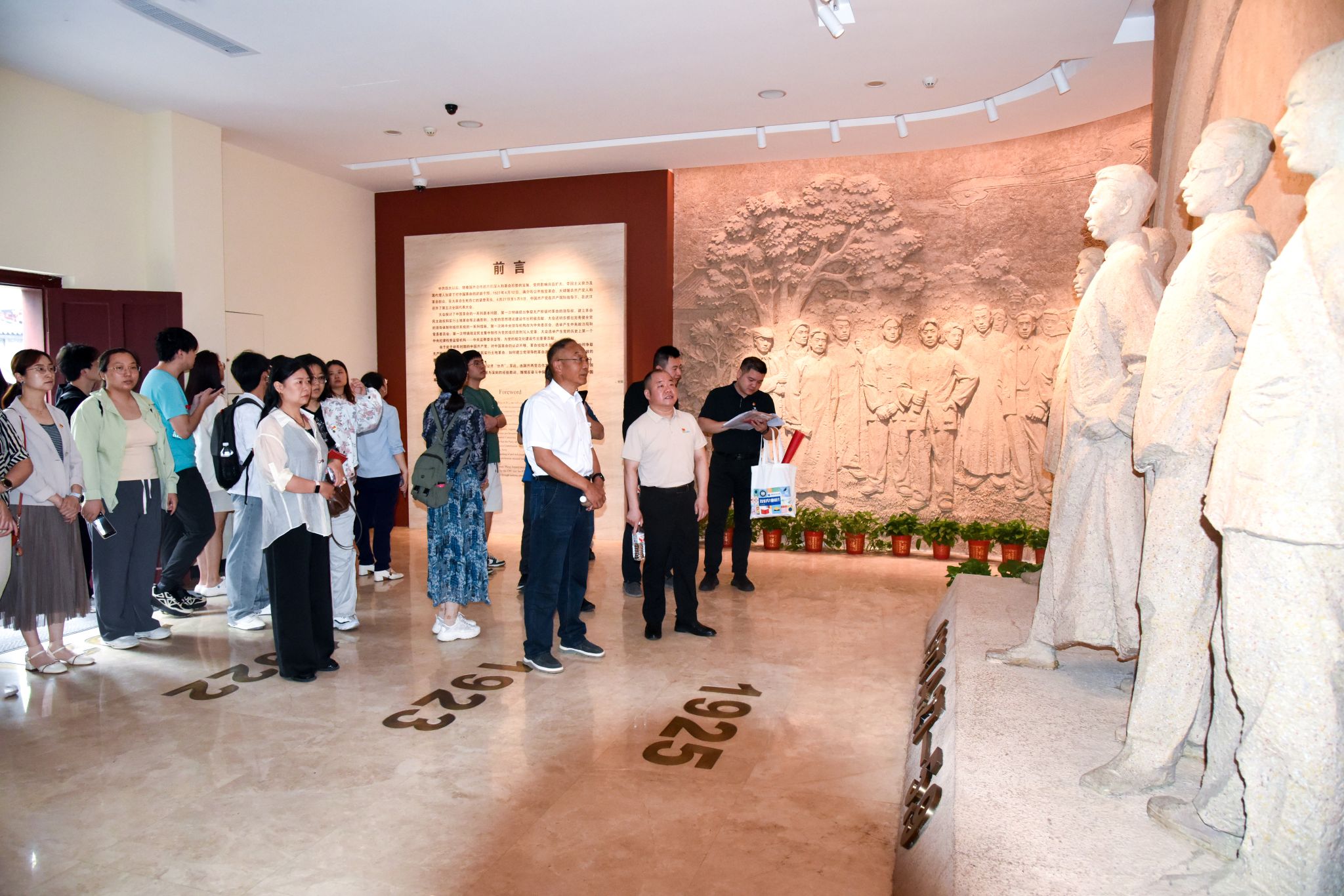 在中共五大会址纪念馆,全体师生党员代表依次参观中共五大开幕式会场、中共五大历史陈列、陈潭秋在武汉等陈列,通过珍贵的历史文物、详实的图文资料和生动的场景复原,深入了解中共五大召开的历史背景、重大决策及其对中国革命的深远影响。参观过程中,同志们驻足交流,深刻感悟到老一辈革命家坚定的理想信念和艰苦奋斗的精神。