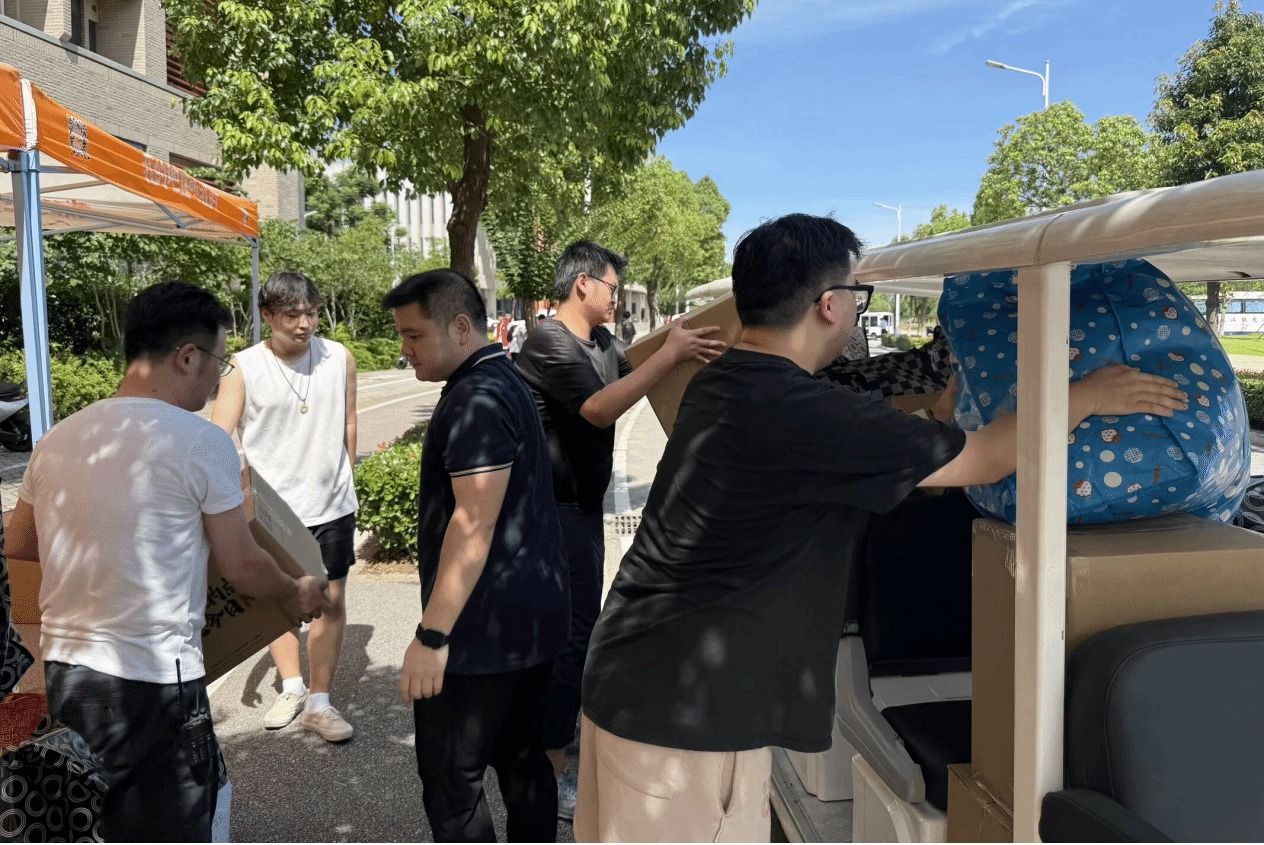 领导班子靠前指挥,学工组全体辅导员、24级班主任潘欢迎老师现场全程组织协调,“张国旗班”志愿团成员、各学生党支部及学生会骨干等组成的志愿者团队冲锋在前,与同学们密切配合,确保了搬迁各环节无缝衔接、有条不紊。