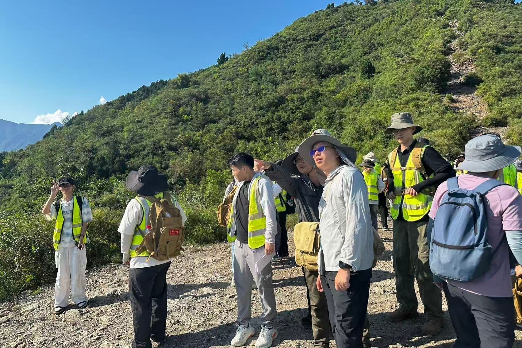 下午,全体师生前往太平山南坡踏勘,进行罗盘使用和后方交会法等实际操作练习。