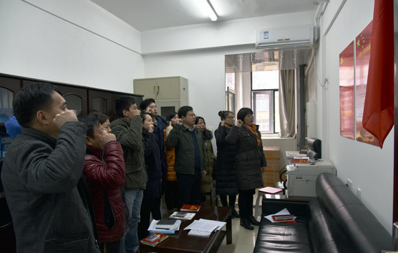 支部成员唱国歌、重温入党誓词 (张学海摄)