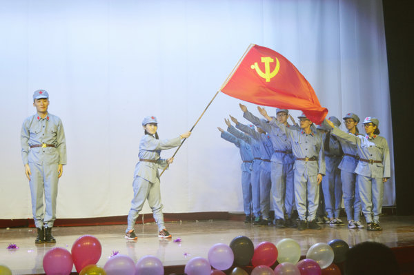 党支部风采展示环节,各个支部精心编排的红色歌舞让我们耳目一新,红船,从南湖启航,诞生社会主义的中华人民共和国;国家,让在场的所有观众为之动容;中国军魂,歌声激昂,唱出中国军人的不畏艰险,勇往直前;永远的长征的不怕牺牲,前赴后继;而校园生活的我们不断钻研,不懈努力,明天一定会更好。