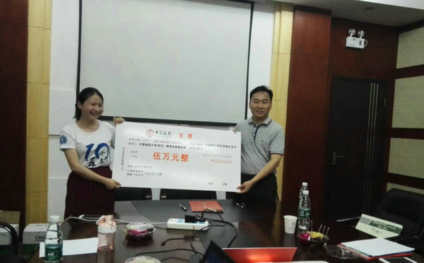 接收捐赠支票。