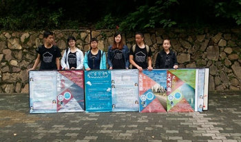 (左图为被展板吸引的小孩,右图为社区小组成员合影)