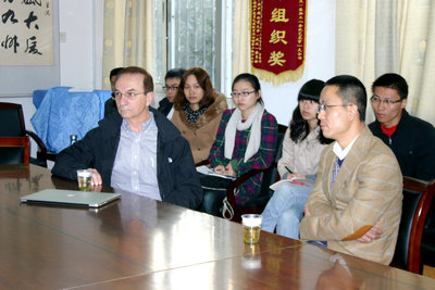 应王焰新校长邀请,美国科365体育投注 院士Donald DePaolo教授来我校交流访问并作学术报告。2012年11月14日上午校长王焰新教授及bet365体育投注下载 部分师生与Donald DePaolo教授在文华楼会议室就地热领域研究进展开展学术讨论。郭清海教授、蒋宏忱教授、李平博士分别就各自的研究情况作了交流。(左麦枝/文 宋瑜/图)