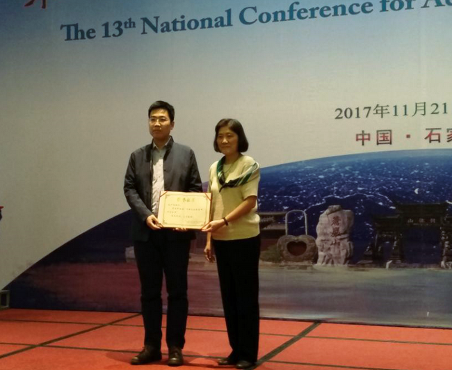 张学海)2017年11月23日,由中国颗粒学会气溶胶专业委员会主办的第十三届全国气溶胶会议在石家庄召开。bet365体育投注下载大气科学系孔少飞教授荣获“第五届中国气溶胶青年科学家奖”,并受邀作了报告。