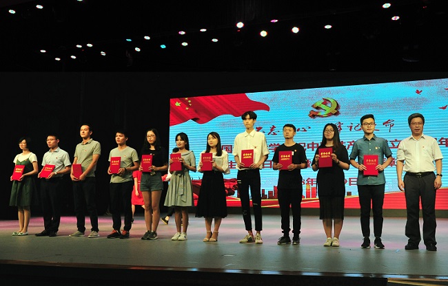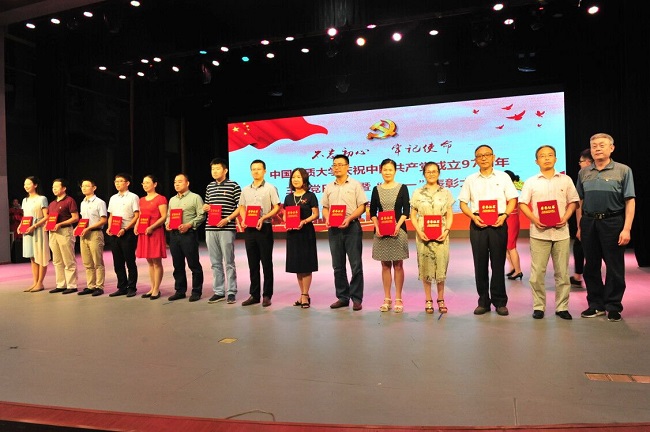 今年是中国共产党成立97周年。在6月29日晚学校举行的庆祝建党97周年主题党日活动暨表彰大会上,崔艳萍、孔少飞、李小倩三名同志获评教职工“优秀共产党员”, 张学海同志获评教职工“优秀党务工作者”, 郭文杰同学获评“十佳学生党员”,郑淑睿等7名同学获评“优秀研究生共产党员”,储生明等6名同学获评“优秀本科生共产党员”。