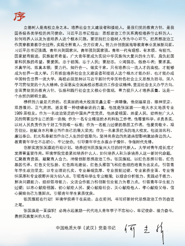 党委创新实施“张国旗班”行动计划,校党委书记何光彩为该计划作序。