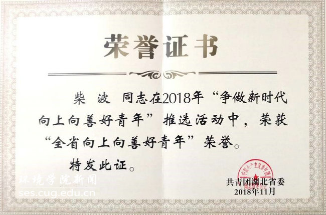 (通讯员:王碧 编辑:张学海)近日,在团省委举办的2018年“争做新时代向上向善好青年”推选活动中,bet365体育投注下载柴波教授荣获“全省向上向善好青年”荣誉称号。