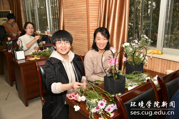 为释放女教师工作和生活上的压力,邢新丽老师邀请了花艺师,女教师们聆听着花艺师对养花、插花的知识讲解,大家都沉浸在插花的乐趣之中。在花艺师的指导下,每位女教师都独自完成了一幅完美的花艺作品并合影留念。