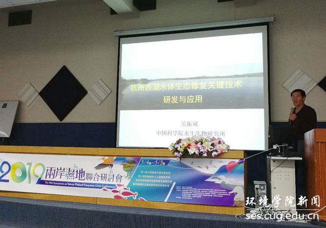 水生生物研究所等单位联合主办,台湾中兴大学、中国地质大学(武汉)、武汉理工大学、中国环境科学学会环境生物学分会等单位协办。我校自2014年起受邀成为会议主要协办单位之一,王焰新校长任指导委员会委员,马腾院长任组织委员会委员,bet365体育投注下载“地大学者”讲座教授吴振斌任会议秘书长。本次会议主题为“湿地之跨域沟通及明智利用”。两岸人工湿地专家学者和工程技术管理人员约300人参加了本次研讨会。bet365体育投注下载环境科学与工程系郭益铭教授参加了会议。