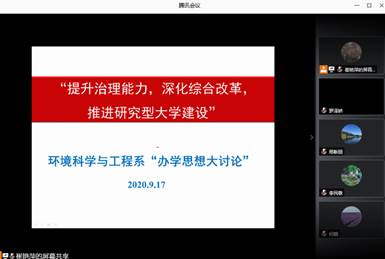 (通讯员左麦枝)根据学校关于“提升治理能力,深化综合改革,推进研究型大学建设”工作安排,环境科学与工程系于2020年9月17日召开了“办学思想大讨论”线上专题会议。bet365体育投注下载