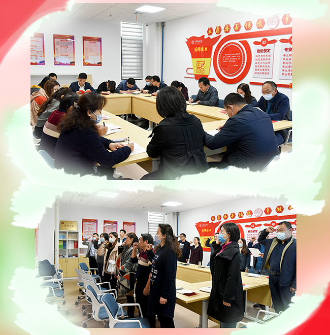 全体党员齐唱国歌、重温入党誓词。