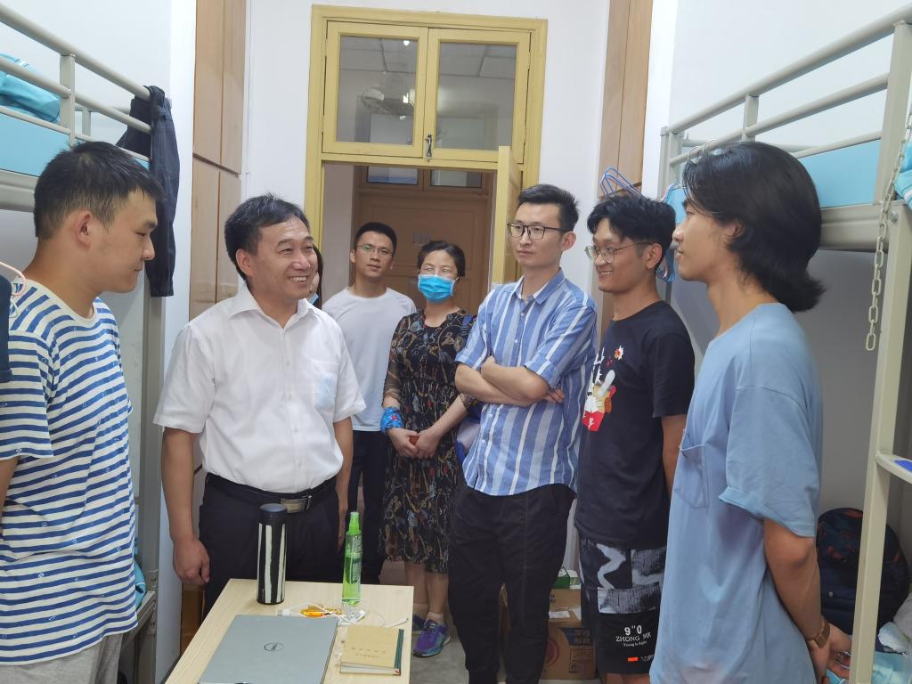 29日下午,李素矿一行来到学生宿舍,与学生亲切交流,详细了解学生实习情况、关怀学生身体健康。询问河南籍学生家中受灾情况,有何困难,要求要将学校政策要求落实好,让同学感受到党组织的关心和大家庭的温暖。叮嘱同学们严格遵守学校和属地疫情防控政策要求做好个人防护,对家在中高风险区的同学表示慰问,要求他们打电话问候家人,实习结束后直接回校,确保不影响新学年学习。同时要求做好防暑工作和野外作业安全。
