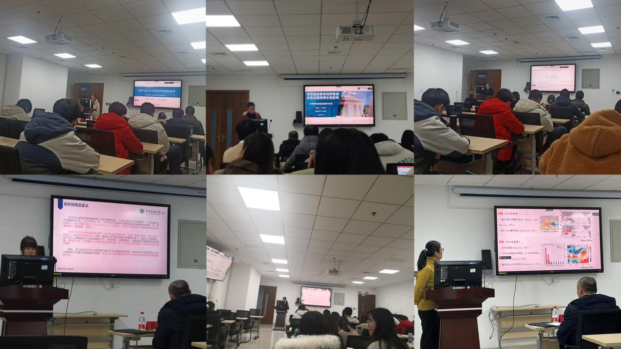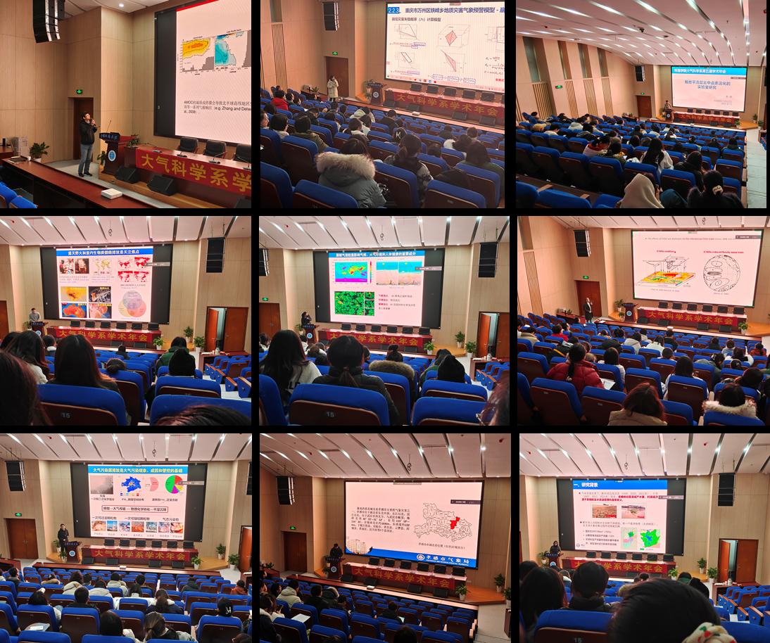 在教师报告中,任国玉教授介绍了课题组在早期稀有历史气象观测资料拯救方面所做的工作,以及东亚地区极端气候研究领域的最新进展;余欢教授和孔少飞教授分别报告了他们在极地平流层卤素活化实验室研究及大气PM2.5亚类源谱组成的大气化学意义研究的最新成果。