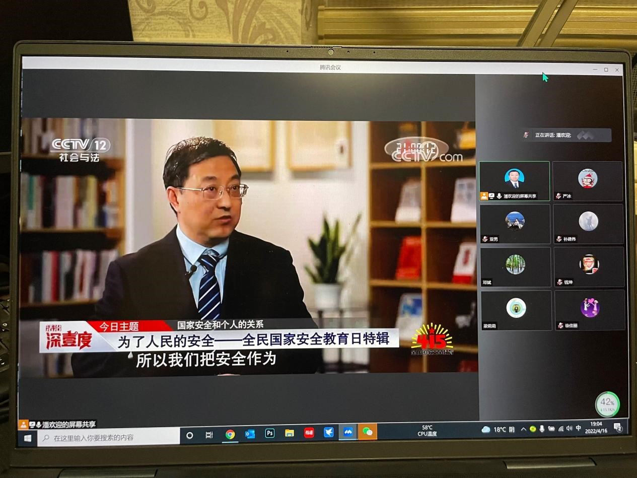 师生的国家安全法治意识,根据学校党委《关于组织开展2022年全民国家安全教育日活动的通知》要求,2022年4月15日-16日,环境师生以线上线下结合形式集中观看了CCTV-12的专题宣传片《为了人民的安全——全民国家安全教育日特辑》,并依托QQ群、微信群、微博等多媒体集中开展学习讨论。