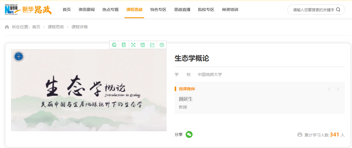 (通讯员严丽莎 张学海 编辑严丽莎)近日据悉,bet365体育投注下载顾延生教授及其团队负责的《生态学概论》通识课课程思政案例上线新华网新华思政平台(//xhsz.news.cn/curriculum/detail/1183)。
