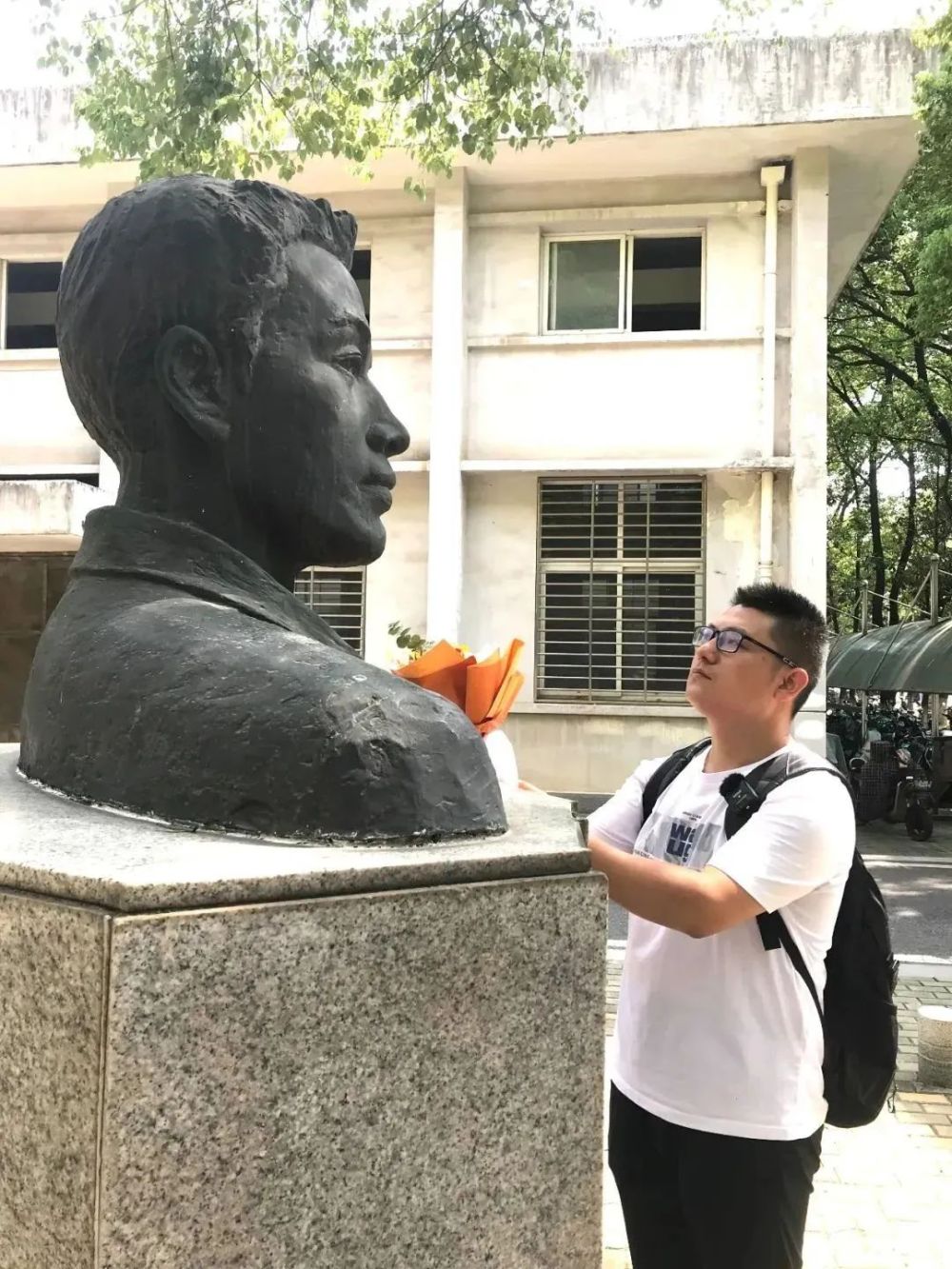 9月2日,在中国地质大学(武汉)里的张国旗塑像前,31岁的硕士研究生新生张云飞,深深地三鞠躬。