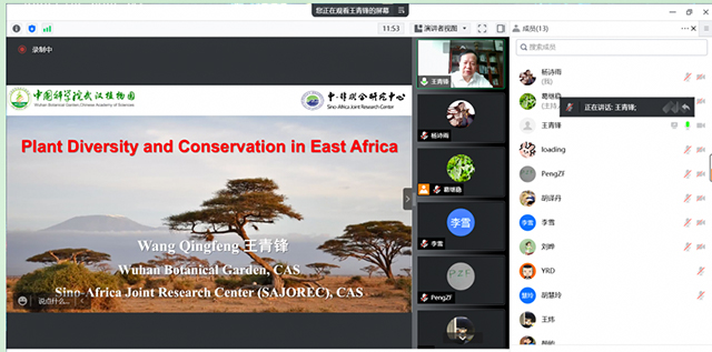 武汉植物园王青锋研究员线上以《东部非洲地区植物多样性与保护》为题作学术报告。百余名师生参与报告会。葛继稳教授主持报告会。
