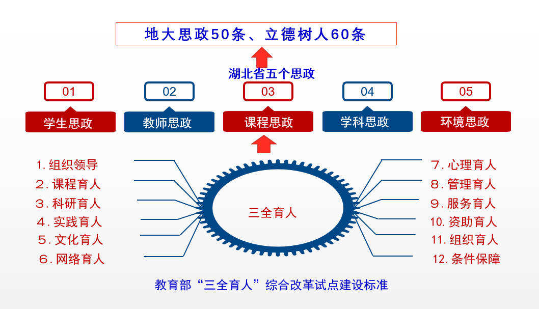 高举中国特色社会主义伟大旗帜,坚持以习近平新时代中国特色社会主义思想为指导,增强“四个意识”,坚定“四个自信”,做到“两个维护”,深入学习贯彻落实党的十九大、十九届历次全会精神,贯彻落实全国教育大会、全国高校思想政治工作会议、新时代全国高等学校本科教育工作会议精神,落实学校第十二次党代会决策部署和《美丽中国·宜居地球:2030——地球科学领域国际知名研究型大学建设战略规划》,科学谋划、全面统筹、积极推进“三全育人”综合改革试点工作。