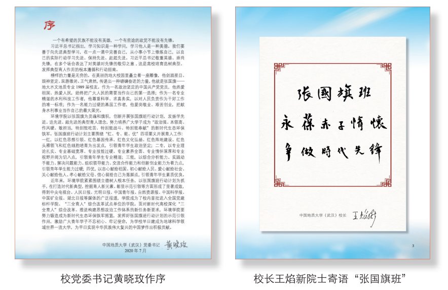 党建资政文化品牌和“美丽中国”课程思政建设、深入基层开展社会实践、发挥本硕博跨学科育人传帮带作用等形式,引领大学生学先进、追先进、超先进,打造以英雄命名的新型党支部工作范式。“张国旗班”党支部入选教育部第三批“全国党建工作样板支部”培育创建单位,英雄之子张云飞于今年九月来校攻读水文地质学硕士学位,并成为党支部的一员。