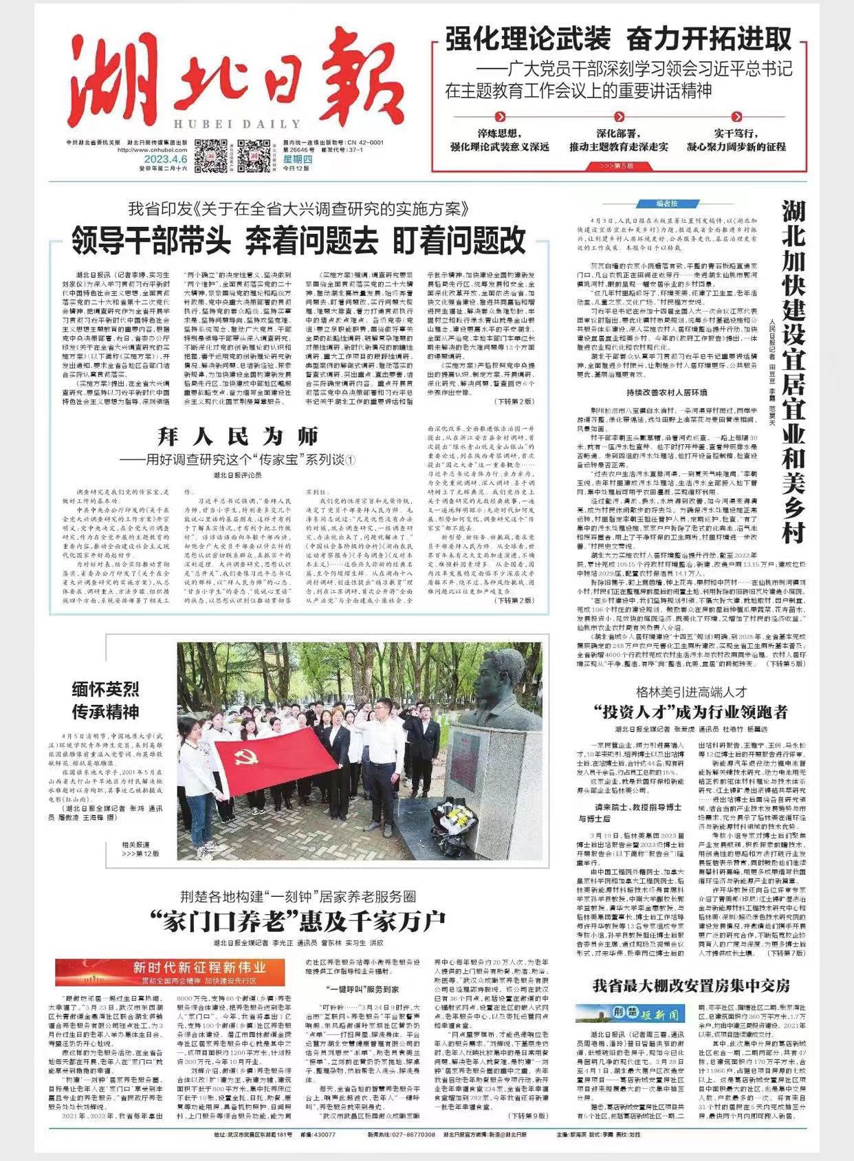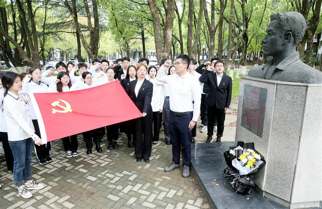 4月5日清明节,365体育投注-bet365体育投注下载 师生青年党员,来到英雄张国旗雕像前重温入党誓词、向英雄敬献鲜花、擦拭英雄雕像,以缅怀英雄,传承先辈用专业知识回报社会、全心全意为人民服务的无私奉献的奋斗敬业精神。张国旗是地质大学学子,2001年5月15日,在山西省太行山区干旱地区为村民解决缺水难问题,以身殉职,其事迹原型拍摄成电影《红山雨》。 (湖北日报全媒记者张鸿 通讯员屠傲凌 王海锋 摄)