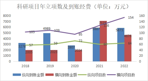 坚持国际前沿与国家需求目标相结合,基础研究和应用研究并重的原则,积极开展科学研究,努力提高服务国家目标的意识和能力。2022年新增科研项目218项,合同经费1.89亿,到账经费1.05亿元。科技部重大专项项目1项,课题6项。国家自然科学基金立项资助27项,其中优青1项,重点2项。湖北省自然科学基金4项,其中获创新群体项目1项、杰出青年人才项目1项、面上项目1项、青年项目1项。