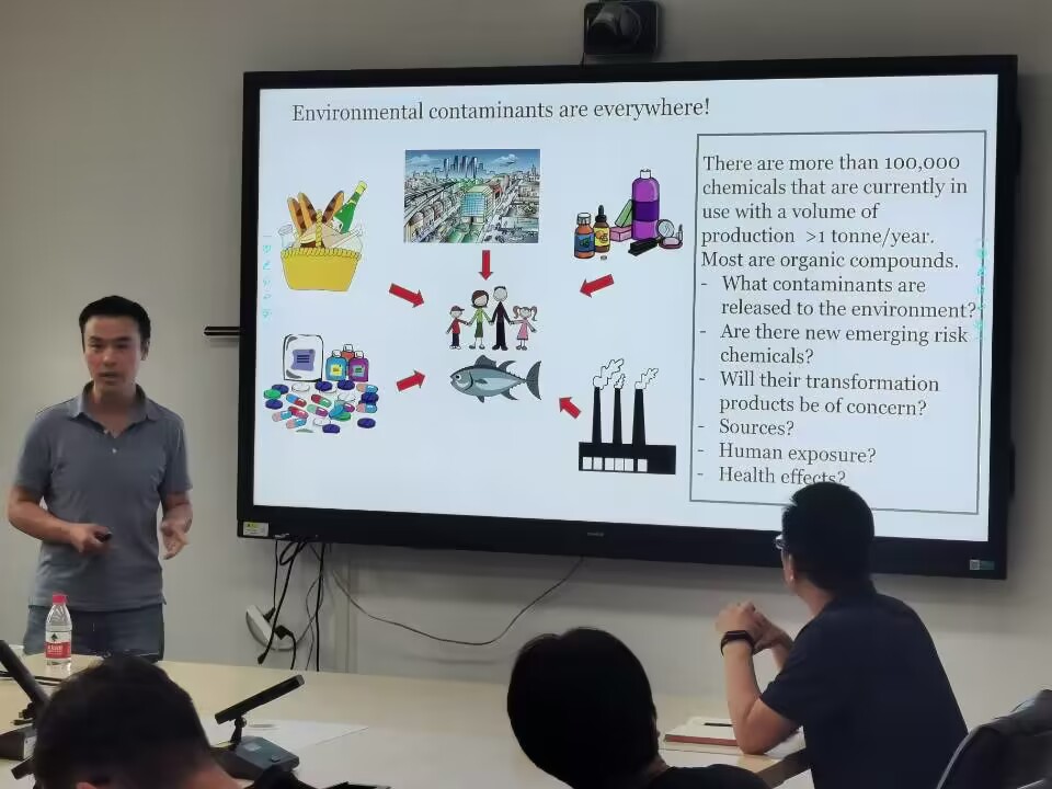 在交流互动环节,史建波教授、刘春生教授等老师以及现场多位同学分别在高分辨质谱的未知物鉴定、化合物特征识别策略以及自然水体中污染物的非靶向筛查等多个方面进行提问,Thanh Wang博士与师生们开展了深入的讨论交流。现场气氛十分活跃。