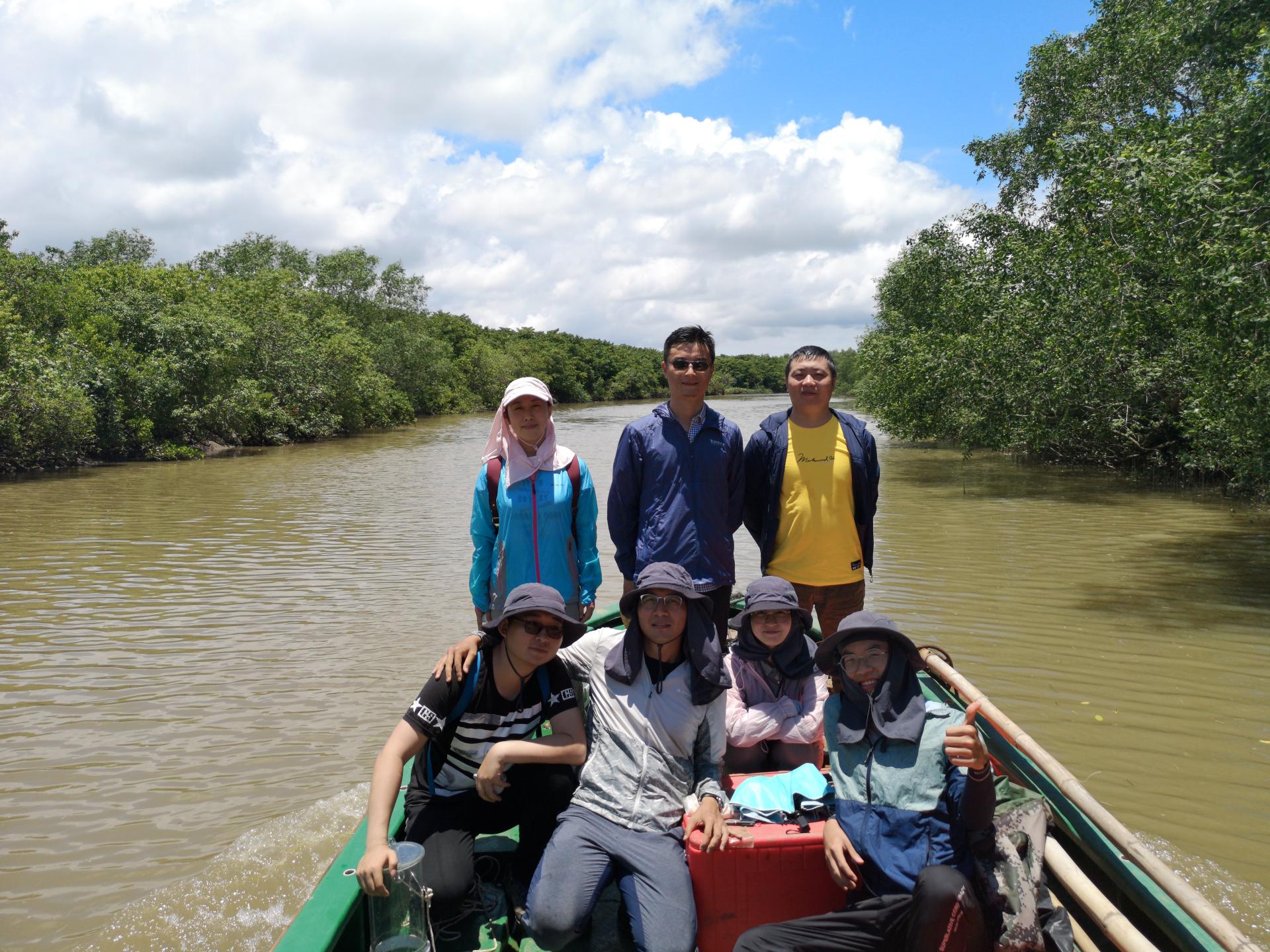 团队师生在海南红树林湿地进行水质监测
