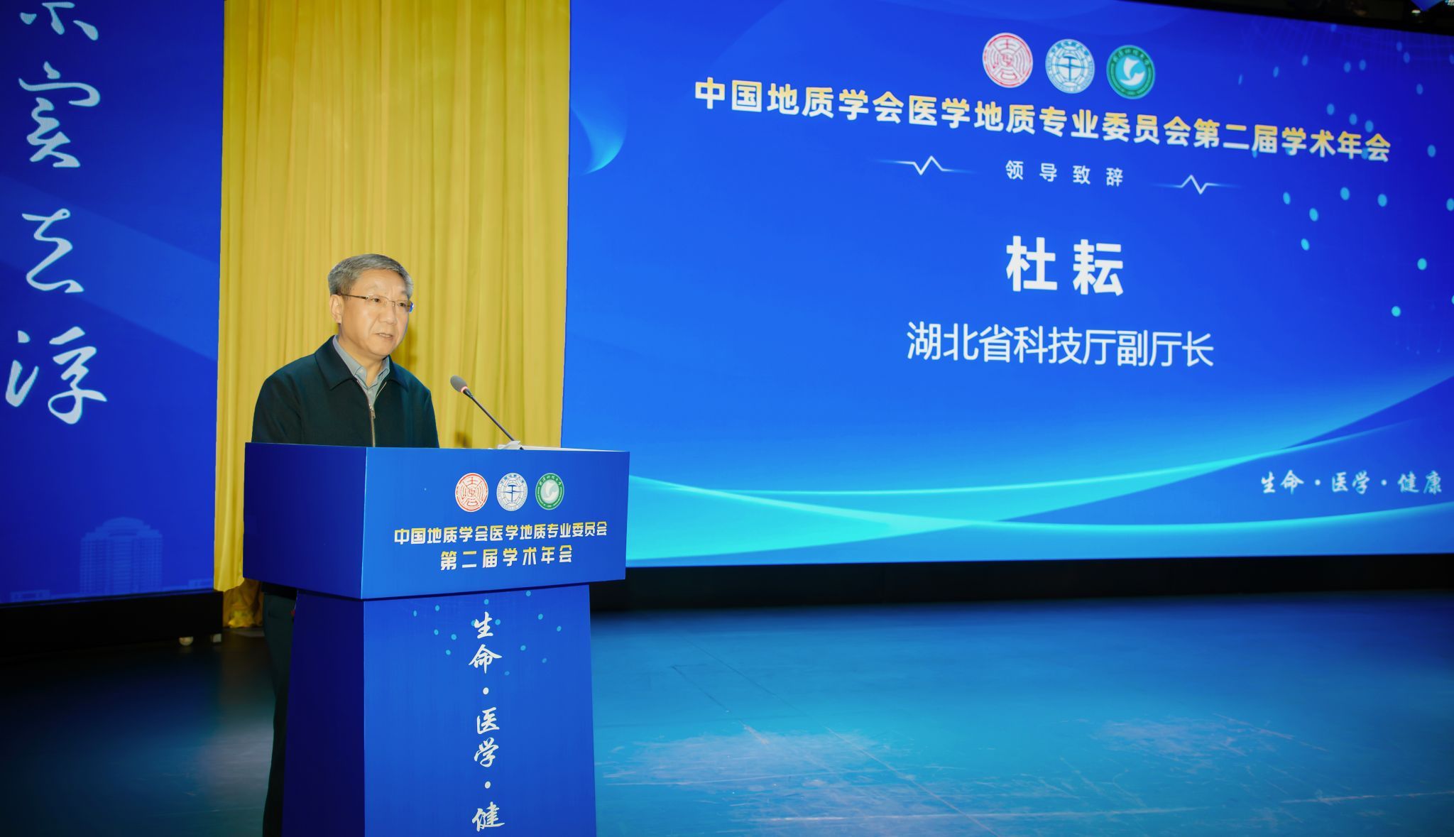 湖北省科技厅副厅长杜耘在致辞中表示,湖北省科技厅将进一步加强与中国地质学会各专业委员会之间的联系与合作,推动医学地质学相关研究应用在湖北开花结果,希望各位专家学者充分利用本次学术年会的平台,深入交流学术思想,分享最新研究成果,共谋发展大计。