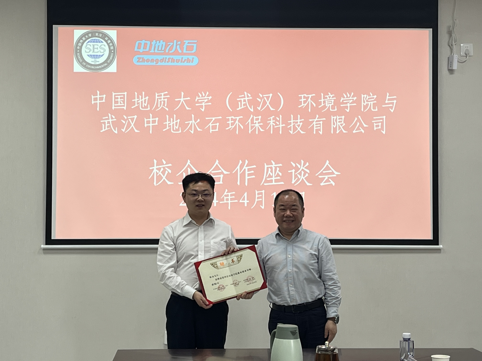 党委书记姜明敏为武汉中地水石环保科技有限公司创始人、董事长彭浩颁发“bet365体育投注下载
