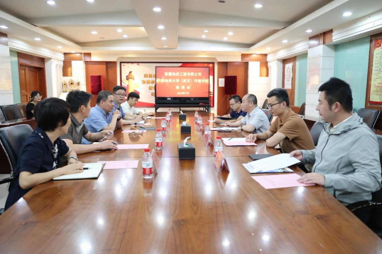 双方与会人员就产学研合作、联合科技攻关、实习实践基地建设、学生就业等方面进行深入交流。最后,双方举行了“地质e站”揭牌仪式。