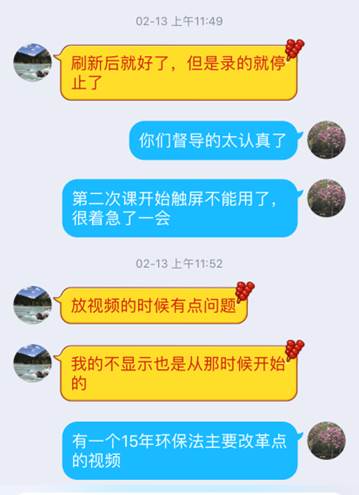 都在开学前推出了各种的网上教学资源和教学方法。环境评价联盟小分队在开学前几天,便化身网上教学软件的测试员,分享教学软件的使用心得;开学第一周,每位老师在完成自己的教学任务同时,还扮演了学生的角色,对网络效果、软件功能、教学效果进行反馈,提出更优网络教学方式,最多的时候,每位老师的直播课堂里会有十位 “卧底”。