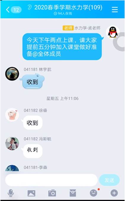 首先任课老师潘欢迎和孟宪萌老师,根据开课班级分布建立QQ群,提前在课程QQ群上传教材电子资料、课件PPT等相关文献资料等资料,通知学生利用精品MOOC课程开展自主学习。为了督促学生自主学习和学习效果的评价,每次上课时,首先对自主学习内容进行课堂测验,掌握学生自主学习情况,然后根据学生掌握情况进行知识点的网上直播讲解。学生在学习过程中如果遇到问题,学生可以利用QQ等对学习进行集中(或单独)解答。