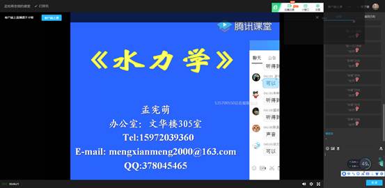 水力学和流体力学是bet365体育投注下载 水文与水资源工程、地下水科学与工程、环境工程专业的一门重要的专业基础课,本学期共有7个班,200余名学生参加学习。在全国人民共同抗击新冠肺炎疫情的关键时刻,在举国上下抗击疫情的特殊时期,《流体力学(水力学)》课程团队积极响应教育部“停课不停学”的号召,迅速参与“地大一平三端”的学习培训,认真研究《流体力学(水力学)》课程教学特点、网络教学资源的状况,确定采用“以学为主、以导为辅”的线上、线下混合式教学方式,即首先由教师引导课程教学目标和知识要求——学生直接利用网上水力学精品教学资源自学——教师线上课堂串联与质疑各章节知识要点、网上直播——学生+教师在线讨论释疑——学生线下练习巩固——教师考核及反馈。