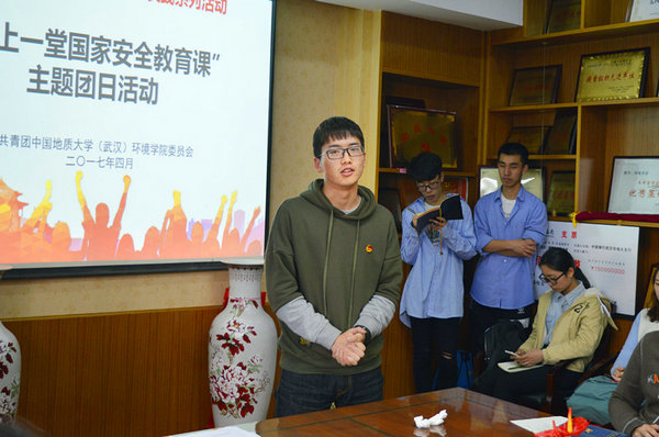 2017年“五四评优”优秀共青团员、优秀共青团干候选人在文华楼201会议室召开“同上一堂国家安全教育课”主题团日活动。