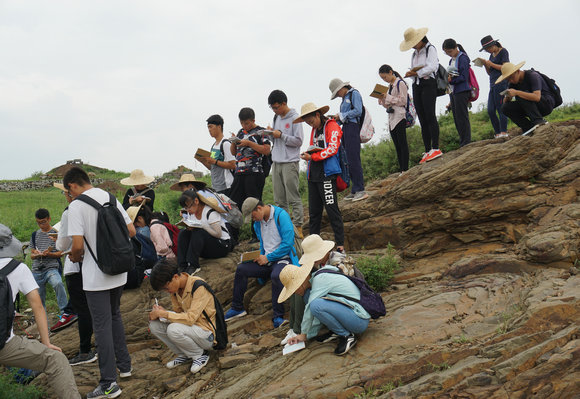 (通讯员 王碧)8月20日,随着生物科学菁英班的学生离开北戴河实习站,bet365体育投注下载2016级本科生北戴河暑期实习圆满结束。北戴河地质认识实习是bet365体育投注下载一年级本科生在学习完成《普通地质学》专业基础课后的必修环节,实习期间学生将第一次跟随专业教师在野外观察认识地质现象、学习基本的野外工作方法,因此北戴河实习被称为地质“初恋”。半个多月的“初恋”里,有太多值得回忆的瞬间:鸡冠山上的炎炎烈日,大石河边的“飞檐走壁”,老虎石人山人海的黄金浴场,鸽子窝海边栈道的白浪滔天……