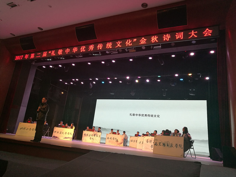 2017年12月8日,由党委学生工作部、党委研究生工作部、教务处、校团委联合举办的第二届“礼敬中华优秀传统文化”金秋诗词大会在弘毅堂顺利举行。bet365体育投注下载付昱钢、刘恩俊、李凡三位同学精心准备,经笔试,小试牛刀初登场、百尺竿头斗志昂、精彩飞花我最强等四个环节等环节后,从全校20余个单位派出的参赛队伍中脱颖而出,荣获第二名。