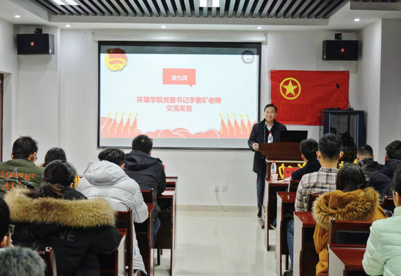 互动发言结束后,校团委副书记姜明敏老师发言。他结合带班校“青马工程”精英班的经历,从原汁原味学习、实心实意宣传、渐行渐悟贯彻三个路径对环院“青马工程”提高班的学员提出了学习学习宣传贯彻习近平新时代中国特色社会主义思想和党的十九大精神。他表示,习近平总书记提出的建设富强民主文明和谐美丽的社会主义现代化强国中的“美丽”一词体现了新时代对一流环境类人才的召唤。