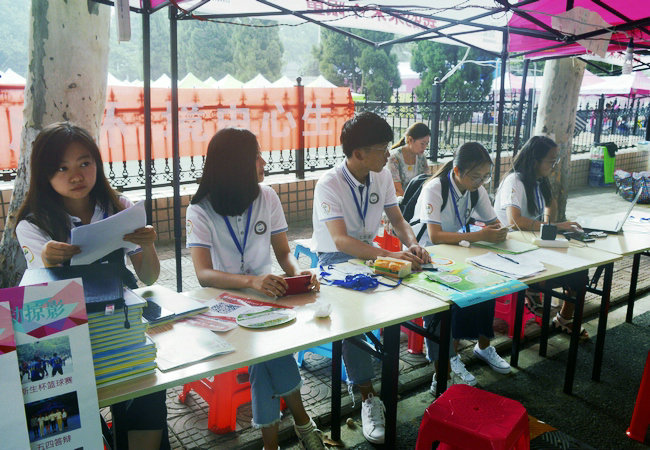 迎新第一天下起了大雨,但丝毫没有影响同学们的服务热情。团委学生会与志愿者分工合作,分别在体育馆前和迎新棚等待新生到来。体育馆前的志愿者负责举牌将新生带到迎新棚处,由迎新点的志愿者引导新生报名注册、关注365体育投注