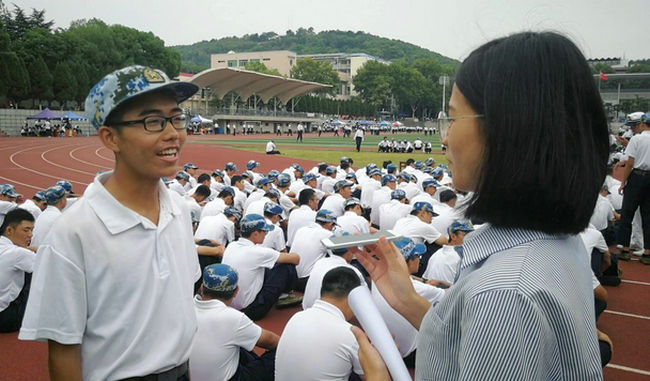 对新生进行采访