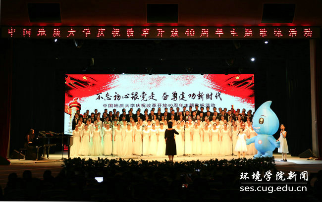 (通讯员:高婷 编辑:王碧 刘芸)2018年12月6日下午,中国地质大学(武汉)“不忘初心跟党走 奋勇建功新时代”庆祝改革开放40周年主题歌咏活动在弘毅堂举行,歌咏活动旨在深入学习贯彻习近平新时代中国特色社会主义思想,以歌声歌颂伟大祖国、庆祝改革开放40周年。全校共20个单位参加比赛。bet365体育投注下载“红山雨”师生合唱团参加了合唱比赛。