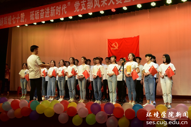 生物大气专业大学生党支部带来合唱《我们都是追梦人》,2018级专硕二班硕士研究生党支部带来合唱《十送红军》,2018级专硕一班硕士研究生党支部带来情景合唱《歌唱祖国+强军战歌》,实验班大学生党支部带来情景朗诵《百年五四,星火燎原》,水文专业大学生党支部带来合唱《我和我的祖国》,2018级学硕一班硕士研究生党支部结合合唱、朗诵、手语舞蹈等形式表演歌曲《国家》,地下水专业大学生党支部带来合唱《青春之光》,环境工程专业大学生党支部带来合唱加朗诵《喊出我的名字》,2018级学硕二班硕士研究生党支部带来朗诵《我的南方北方》。