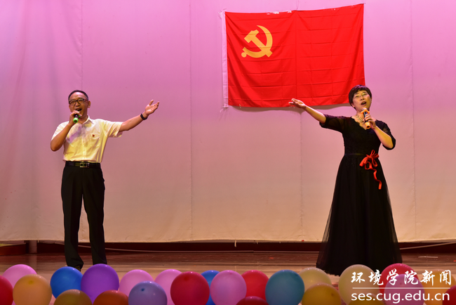 办公室主任左麦枝共同演唱歌曲《不忘初心》,将本次党支部风采大赛推向了高潮。